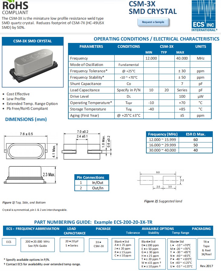 伊西斯SMD石英晶體CSM-3X,ECS-286.3-20-3X-EN-TR車載晶振,ECS-184-20-3X-TR,晶體諧振器,ECS伊西斯晶振,美國(guó)進(jìn)口晶振,CSM-3X是一種小型低輪廓電阻焊縫型SMD石英晶體,將CSM-7X(HC-49USX SMD)的占用空間減少50%。石英晶體諧振器,ECS-120-20-3X-TR無源晶振,ECS-147.4-20-3X-TR石英晶振,兩腳貼片晶振,ECS-120-20-3X-EN-TR無鉛環(huán)保晶振,頻率范圍:12MHz~40MHz,小體積,輕薄型,耐熱及耐環(huán)境特點(diǎn),SMD石英晶振適用于移動(dòng)通訊設(shè)備,無線網(wǎng)絡(luò)晶振,藍(lán)牙模塊晶振,汽車電子晶振,車載晶振,數(shù)碼電子晶振,安防設(shè)備,智能家居,物聯(lián)網(wǎng)等應(yīng)用。