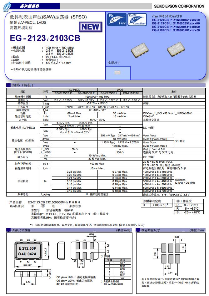 EG-2103CB220.000000MHzLHRH,6G模塊差分晶振,愛普生進口晶振 參數圖