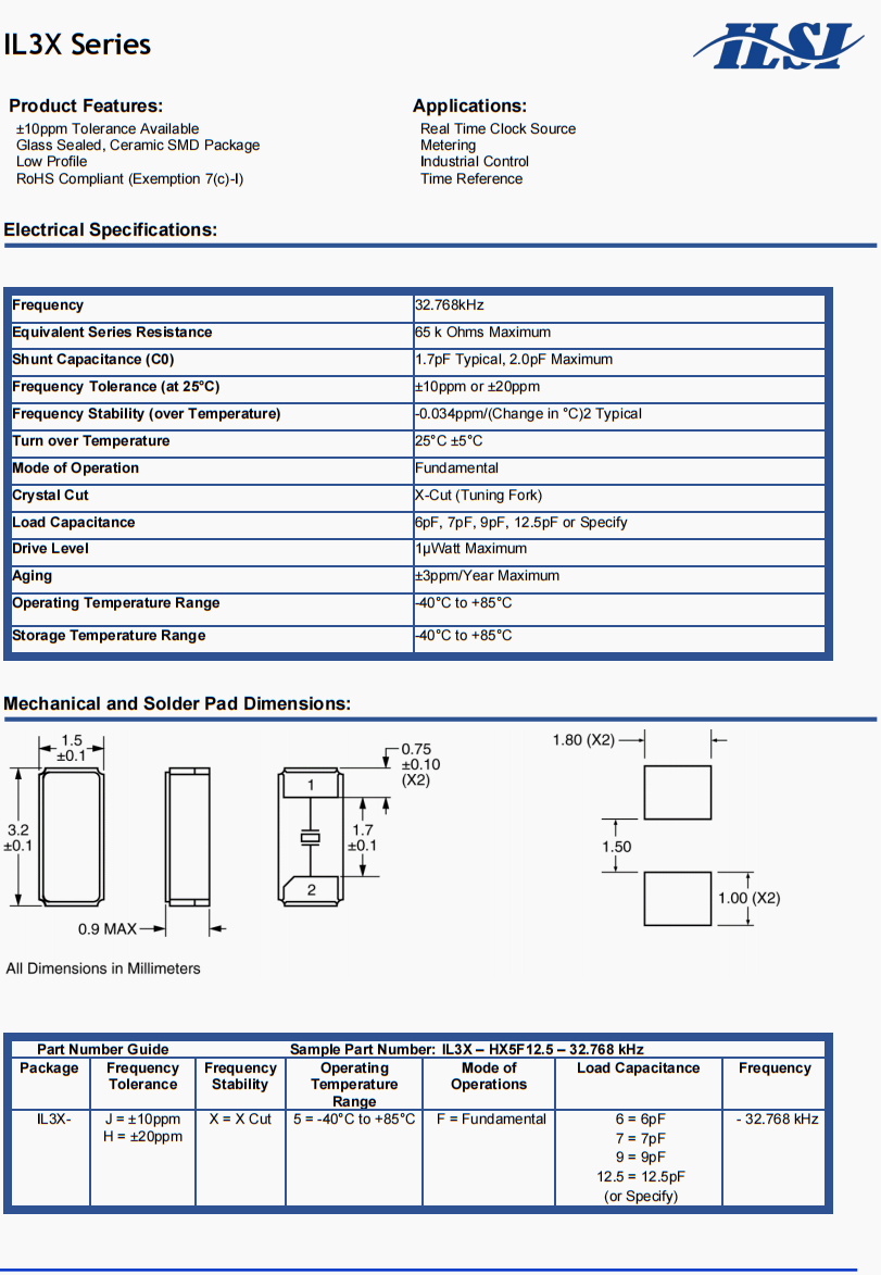 IL3X進口晶振,IL3X-HX5F12.5-32.768KHz晶振,ILSI無線局域網晶振