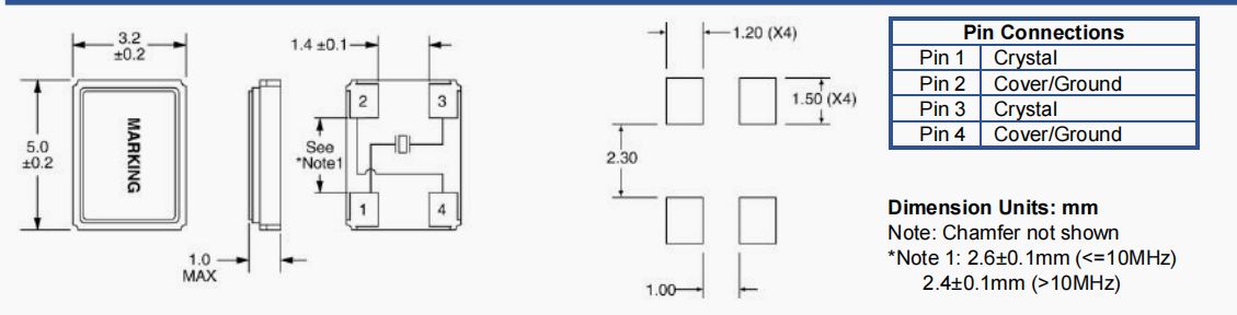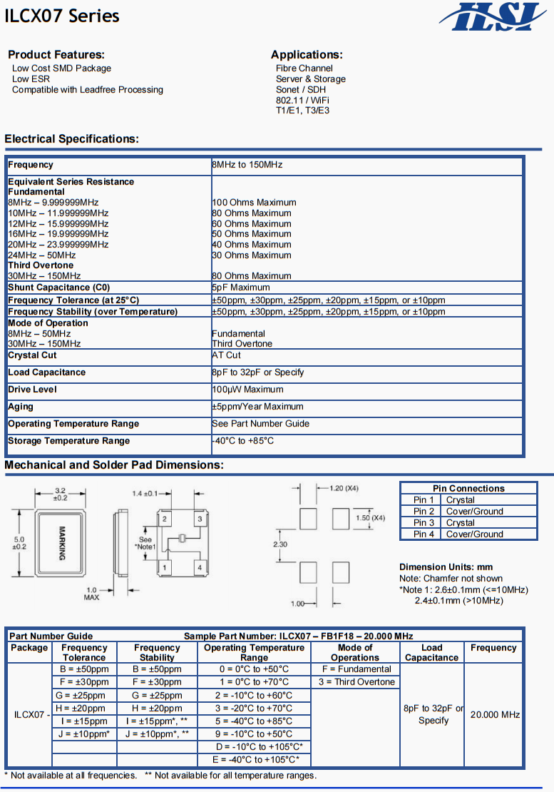 基礎等效串聯電阻 8MHz – 9.999999MHz 10MHz – 11.999999MHz 12MHz – 15.999999MHz 16MHz – 19.999999MHz 20MHz – 23.999999MHz 24MHz – 50MHz Third Overtone 30MHz – 150MHz |