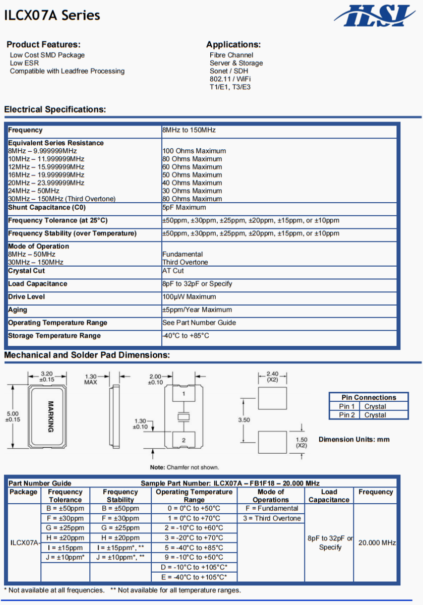 ILSI環(huán)保無鉛晶振,ILCX07A二腳晶振,ILCX07A-FB1F12- 18.432 MHz移動電話晶振