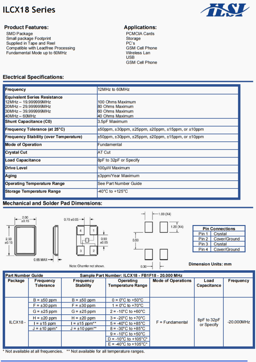ILSI小體積3225晶振,ILCX18智能手機晶振,ILCX18-FF5F12-52.000MHz進口晶振