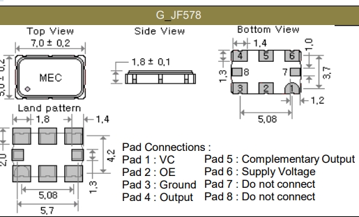 Type 類型 VCXO壓控振蕩器 Package Height高度 1.2mm