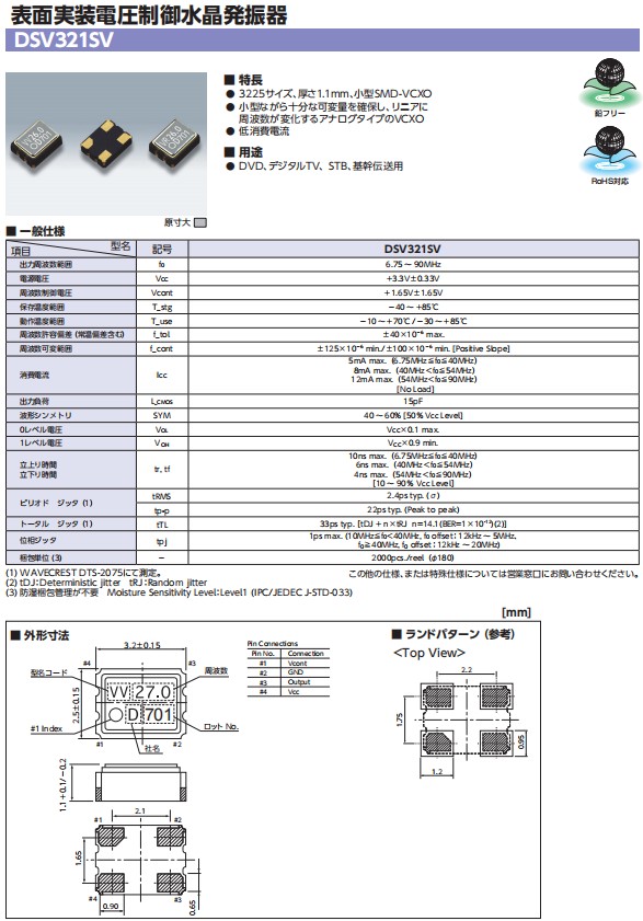 KDS超小型晶振,DSV321SV壓控晶體振蕩器,1XVD008192VB有源晶振,3225mm晶振,四腳貼片晶振