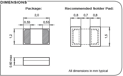 CM8V-T1A-32.768kHz-9pF-20PPM-TA-QC,2012mm,Micro音叉晶體諧振器 尺寸圖