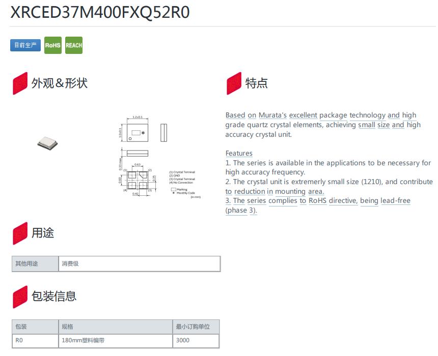 XRCED37M400FXQ52R0石英晶體諧振器,村田日本晶振MCR1210,XRCED37M400FXQ52R0石英晶體諧振器,村田日本晶振,MCR1210超小型晶振,無源晶振,貼片石英晶振,1210mm晶振,環保晶振,智能手機晶振,平板電腦晶振,無線路由器晶振,數碼相機晶振.