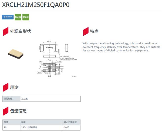 XRCLH21M250F1QA0P0 21.25MHz -30~85℃ 5032mm 8pf ,XRCLH21M250F1QA0P0,頻率21.25MHz,工作溫度-30~85℃,尺寸5032mm,負載8pf,高精度晶振,數字通信設備晶振,測量儀器晶振,微處理器晶振,數碼音影系統晶振.