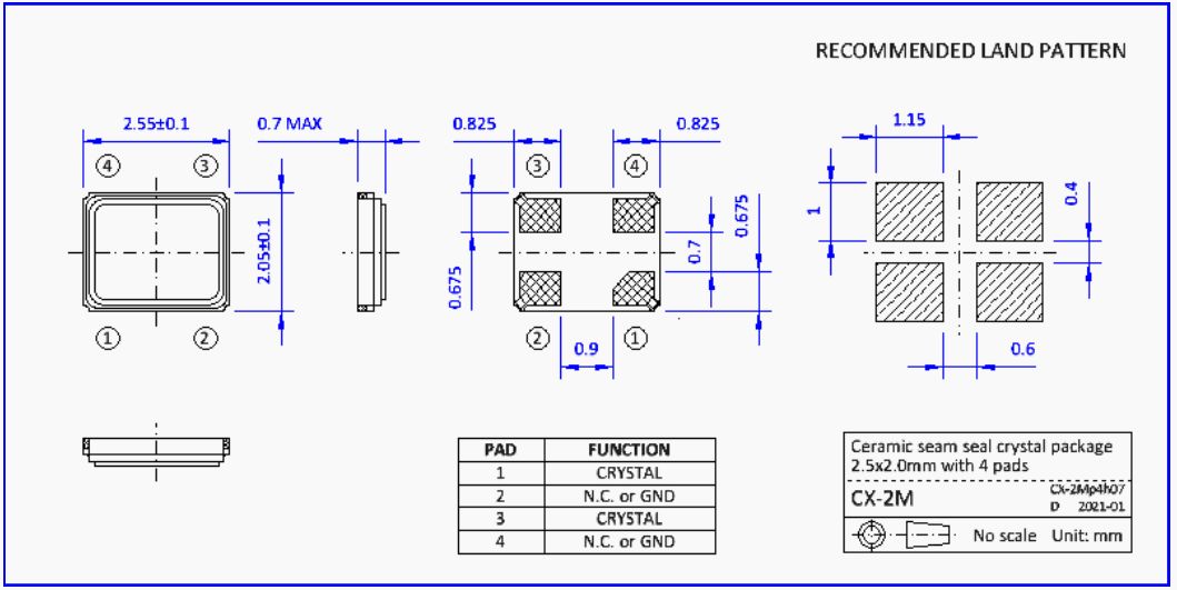 NKG汽車晶體,S2M48.0000F16M23-EXT環保晶振,液晶儀表盤晶振,NKG晶振公司,無源晶振,貼片晶振,超小型晶振,2520晶振,液晶儀表盤晶振,石英晶振,耐高溫晶振,汽車多媒體設備晶振,6G通訊設備晶振,6G網絡終端晶振,無源晶振,貼片晶振。石英晶體單元在陶瓷縫密封SMD封裝,尺寸25. x 2.0mm。產品特點:微型包裝尺寸2.5 x 2.0 x 0.5mm,有4個襯墊。優異的耐熱性和抗震性。真空密封,可靠性高,老化率低。符合AEC-Q200標準的汽車級產品可供選擇。應用范圍:無線、藍牙、移動通訊、便攜設備、USB存儲設備