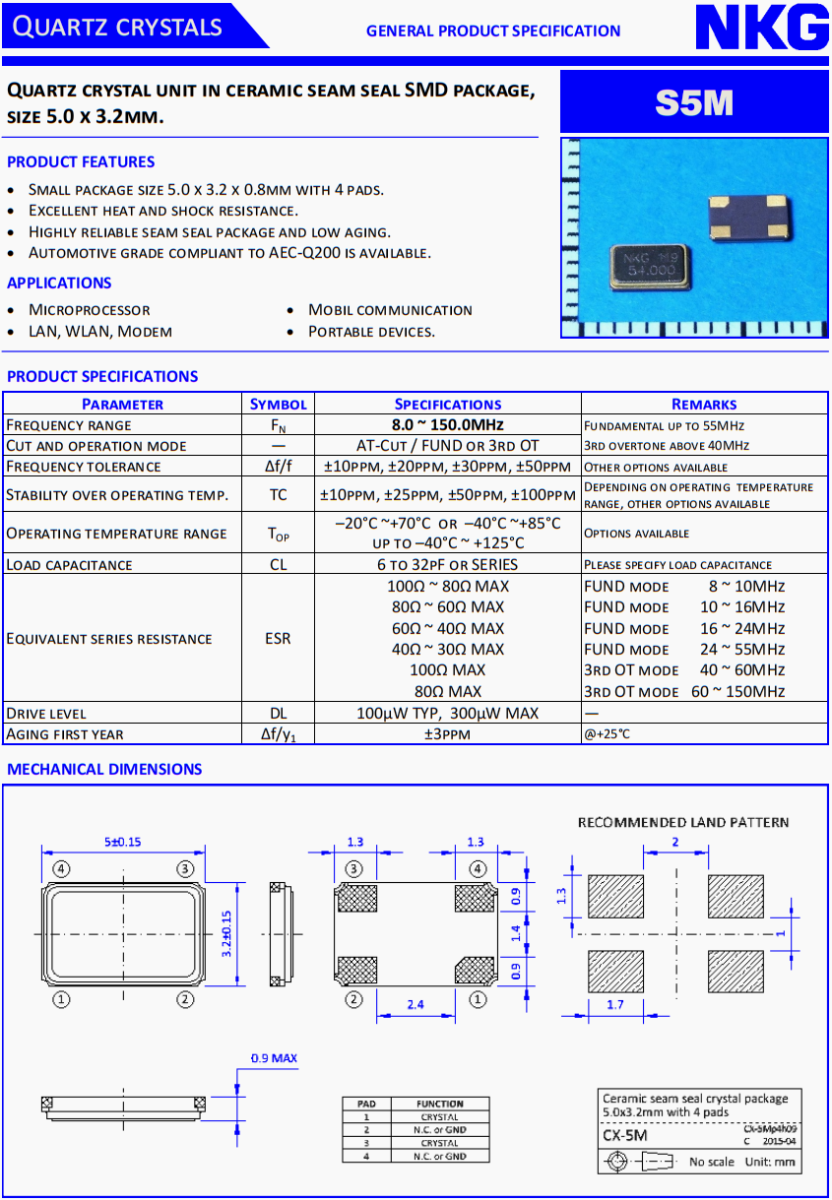 S5M27.1200F16MYY-EXT環保晶振,NKG5032晶體,6G型號發射器晶振,石英晶體單元在陶瓷縫密封SMD封裝,尺寸5.0 x 3.2mm。S5M。產品特點:小包裝尺寸5.0 x 3.2 x 0.8mm與4個墊。優異的耐熱性和抗震性。高可靠的縫封封裝,低老化。符合AEC-Q200標準的汽車級產品可供選擇。應用范圍:微處理器。局域網,無線局域網,調制解調器,移動通信,便攜式設備。NKG晶振公司,無源晶振,貼片晶振,超小型晶振,2520晶振,液晶儀表盤晶振,石英晶振,耐高溫晶振,汽車多媒體設備晶振,6G通訊設備晶振,6G網絡終端晶振,無源晶振,貼片晶振。