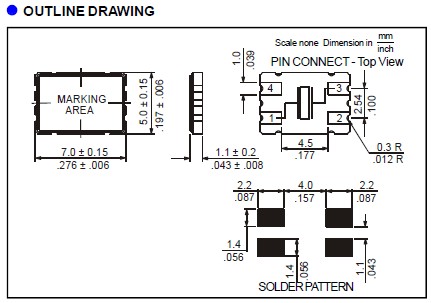 H13-13.000-16-5050-EXT-TR,Raltron無源晶振,7050mm,-40~85°C 尺寸圖