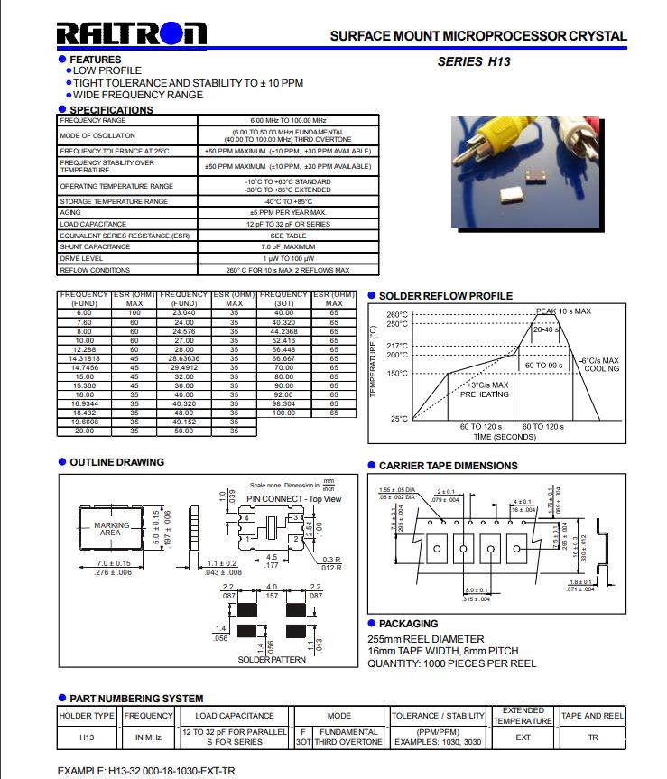 H13-13.000-16-5050-EXT-TR,Raltron無源晶振,7050mm,-40~85°C,參數(shù)圖