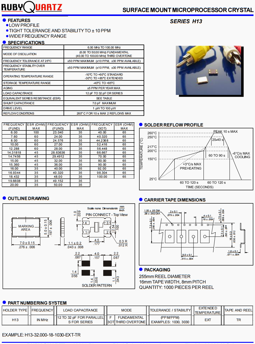 H13-32.000-18-1030-EXT-TR晶振,歐美rubyquartz晶體,耐高溫汽車晶振,美國盧柏晶振公司,高精度晶振,無源晶振,貼片晶振,高精度晶振,6G通訊設(shè)備晶振,無線傳輸晶振,局域網(wǎng)晶振,7050晶振,高品質(zhì)晶振,SMD晶振,石英晶振,小體積晶振,低損耗晶振 ,北斗衛(wèi)星定位模塊晶振,6G無線網(wǎng)晶振,高精度晶振。表面貼裝微處理器晶體,低輪廓,嚴格的公差和穩(wěn)定性到±10ppm,寬頻率范圍。
