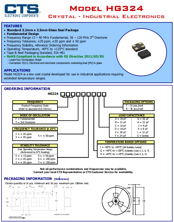 HG324240F23GCT晶振就是CTS晶振公司為需要擴(kuò)展溫度范圍的工業(yè)應(yīng)用開(kāi)發(fā)的一款型號(hào)為HG324的無(wú)源晶振,石英晶體,尺寸3.2*2.5mm,頻率范圍12·120MHz,工作溫度可以選-40~125°C,-40~105°C,-40~85°C,頻率穩(wěn)定性強(qiáng),體積小,耐熱性好,是一種低成本的SMD石英晶體,由于它用途廣泛,一經(jīng)上市,就受到了廣大客戶(hù)群體的喜歡。