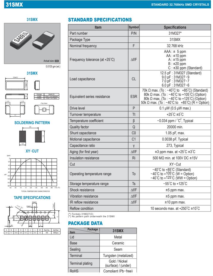 SMI晶振,31SMX晶振,3215晶振,無源晶振是屬于日本SMI晶振公司的兩腳金屬表面3215mm封裝的千赫晶體,同時也是一款超級輕薄小型的石英晶體諧振器,貼片型的合理設計,能承受住+125℃的高溫和-40℃的低溫,擁有比陶瓷表面晶振更好的抗摔性,符合歐盟的ROHS規定,31SMX晶振適用多樣化的智能家居電子數碼等領域,可發揮性優良的耐沖擊性能。