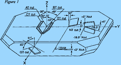 無線應用中最常用的晶體切割角度是AT切割(見圖1),以這種方式制造的石英晶體可以以相對高的頻率獲得,表現出優異的頻率與溫度穩定性,并且成本適中,從1MHz到1GHz以上的基本諧振頻率是可能的,但由于價格和其他限制,大多數AT切割晶體的基本頻率在1.8到40MHz之間,AT切割晶體的諧振模式(泛音)大約是基模的奇數倍(見圖2),為這些泛音指定的石英晶振通常落在24至200MHz的頻率范圍內.