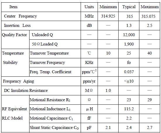 聲表面濾波器,TO-39R315M,聲表濾波器,聲表面諧振器