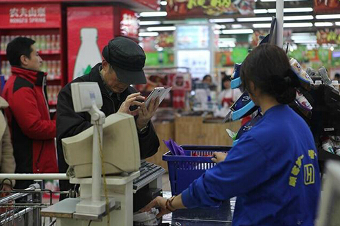 大爺在用手機支付