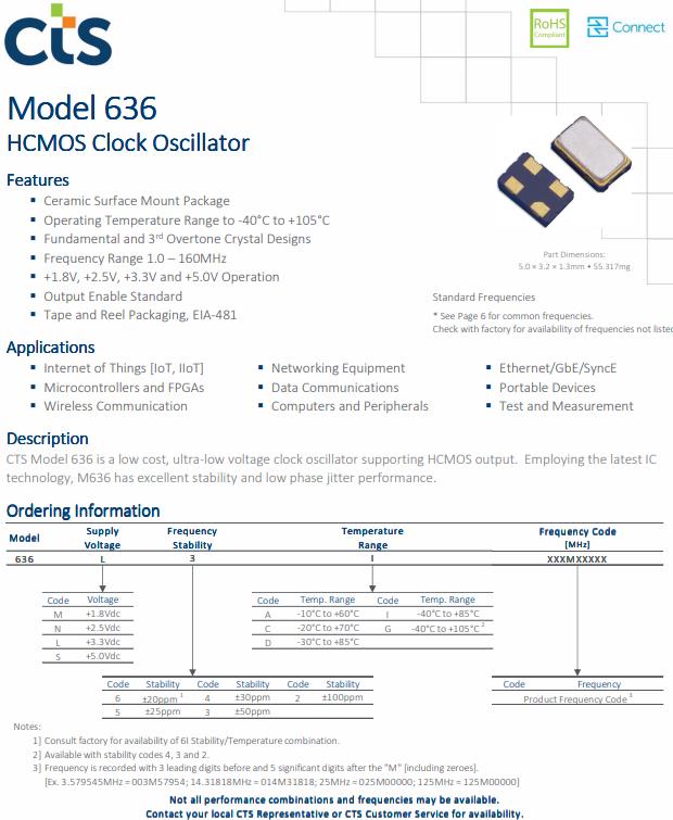 | 636L3C016M00000 | CTS晶振 | 636 | 16MHz | ±50ppm |