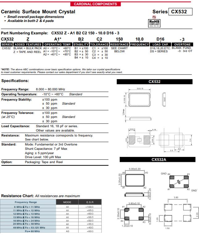| CX532Z-A5B3C5-70-18.432D18 | Cardinal晶體 | CRYSTAL 18.4320MHZ 18PF SMD | CX532 | 18.432MHz | ±30ppm | 70 Ohm | -20°C ~ 70°C |