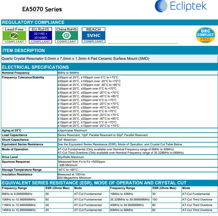 | EA5070PA20-6.000MTR | Ecliptek石英晶體 | QUARTZ CRYSTAL RESONATOR |