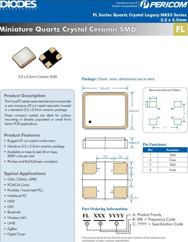 | FL384WFIN1 | Diodes晶振 | SaRonix-eCera™ FL | 38.4MHz | ±12ppm |