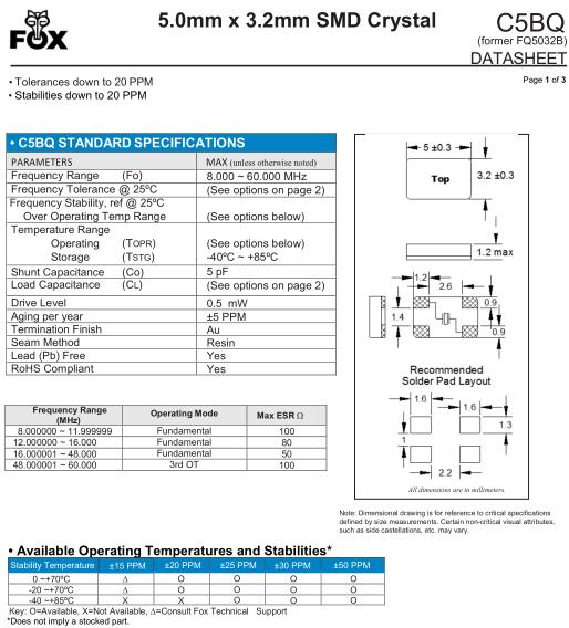 | FQ5032B-20.000 | FOX無源晶振 | C5BQ | MHz Crystal | 20MHz | ±30ppm |