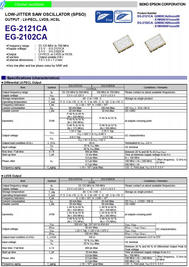 | Q3805CA10013600 | EG-2121CA | 100.000000 MHz | 7.00 x 5.00 x 1.20 mm | LVDS | 2.375 to 2.625 V | 0 to 70 °C |
