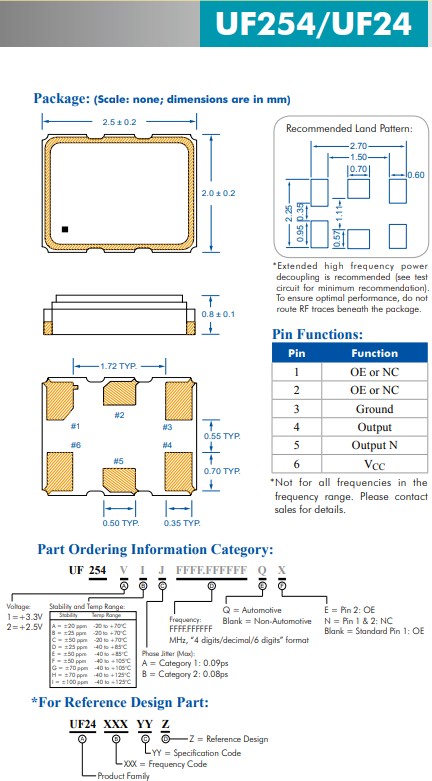 UF254/UF24 XO系列具有超低抖動性能的高性能HCSL晶體振蕩器組成