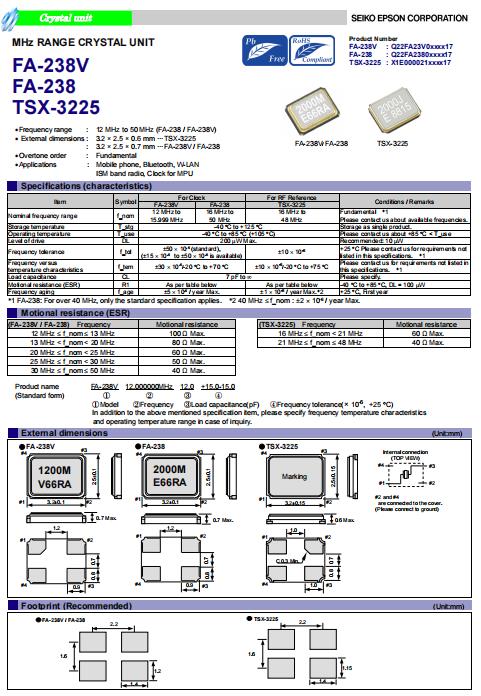 | X1E000021016416 | 3.2 x 2.5 x 0.6mm | TSX-3225 | 32.000000 MHz | 12 pF | +/-10 ppm | +/-10 ppm | -20 to +75 °C | ≤ 40 Ω |