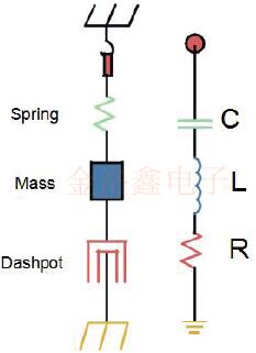 最常見(jiàn)的晶體設(shè)計(jì)之一是AT切割晶體,它將是貫穿本應(yīng)用筆記的參考晶體類型.對(duì)于1兆赫以上的頻率,通常只使用厚度剪切振動(dòng)模式.AT切割晶體的頻率由晶體的厚度決定,即晶體越薄,頻率越高.諧振器的振動(dòng)質(zhì)量相當(dāng)于一系列運(yùn)動(dòng)電感,L1.晶體的機(jī)械損耗表現(xiàn)為等效串聯(lián)電阻R1,而晶體的機(jī)械彈性相當(dāng)于串聯(lián)電容C1.C0是與保持器和電極電容相關(guān)聯(lián)的并聯(lián)電容.AT切割晶體具有良好的穩(wěn)定性和溫度特性,這是它們受歡迎的原因之一. 公式-等效電子