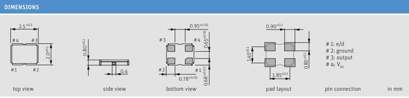 -具有停止功能的SMD振蕩器•2.5x2.0mm