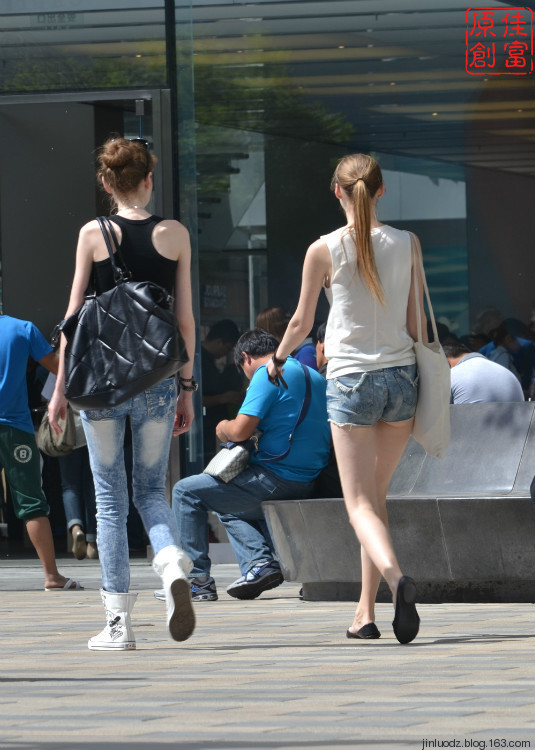 如果從設(shè)計上講,設(shè)計這種短褲的設(shè)計師真是很細心和大膽,他把這種短褲的尺度把握的非常好,似露非露讓人想入非非,我在拍攝的時候看到大多數(shù)男性童鞋們都把目光投在穿這種短褲的女性童鞋們的身上,可以說穿這種短褲去逛街回頭率可以達到百分之九十九點九!
