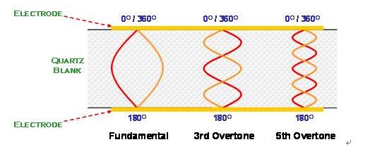 在AT切割角度的石英晶體共振子主要是以厚度剪切振蕩模態(tài)存在.石英晶振在共振時(shí), 除了基本波振蕩之外, 高階的倍頻共振也與基本波振蕩同時(shí)存在于石英晶體的電極區(qū)域之間. 但是, 由于壓電材料的電極是電氣相位相反的振動(dòng)環(huán)境, 所以, 祇有奇數(shù)倍(odd number)的高頻倍頻可以發(fā)生,偶數(shù)倍(even number)的倍頻共振在石英晶體共振子是不會(huì)存在的.品工作條件.jpg)